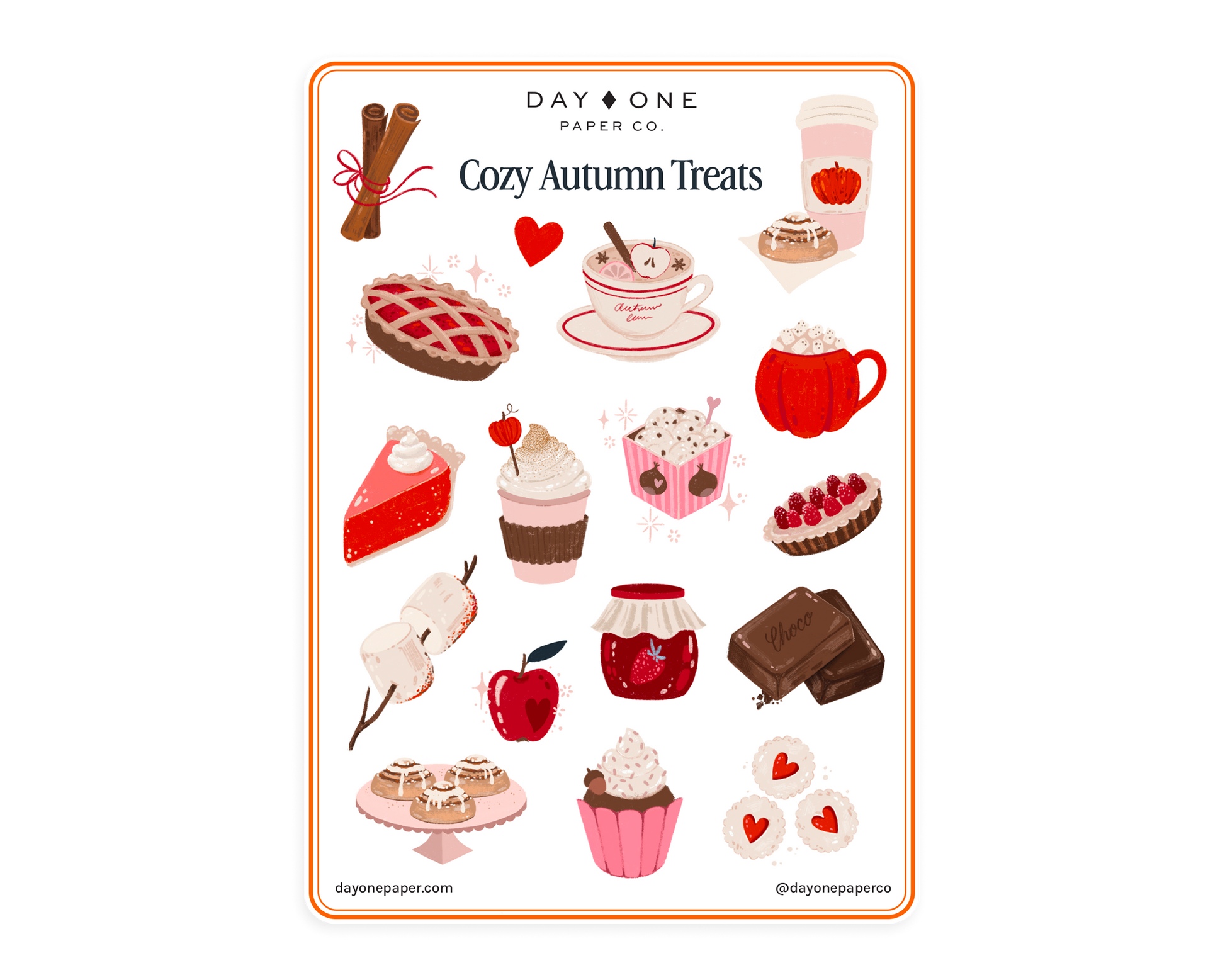 Une feuille d'autocollants pleine de douceurs automnales réconfortantes... le mélange parfait de mignon et de réconfortant 🍂🧁✨ Ajoutez une touche de charme saisonnier à vos agendas, journaux ou albums. Chaque autocollant dessiné à la main est inspiré de vos douceurs et friandises automnales préférées — pensez aux tartes chaudes, aux pommes caramélisées et aux tasses de cacao réconfortantes : parfait pour capturer l'esprit réconfortant de l'automne. Apportez une pincée de douceur et de nostalgie à chaque page !