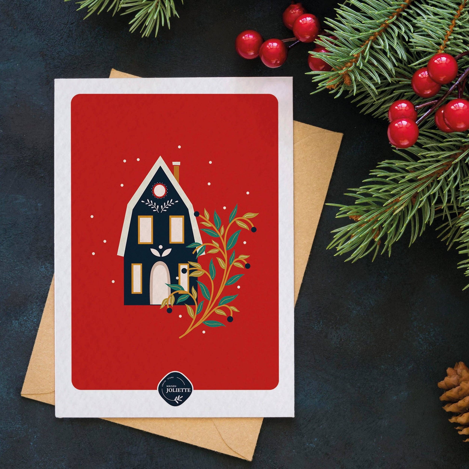 Célébrez Noël avec la carte "Maisonnette de Noël". Cette carte est parfaite pour exprimer votre affection et votre amour.
