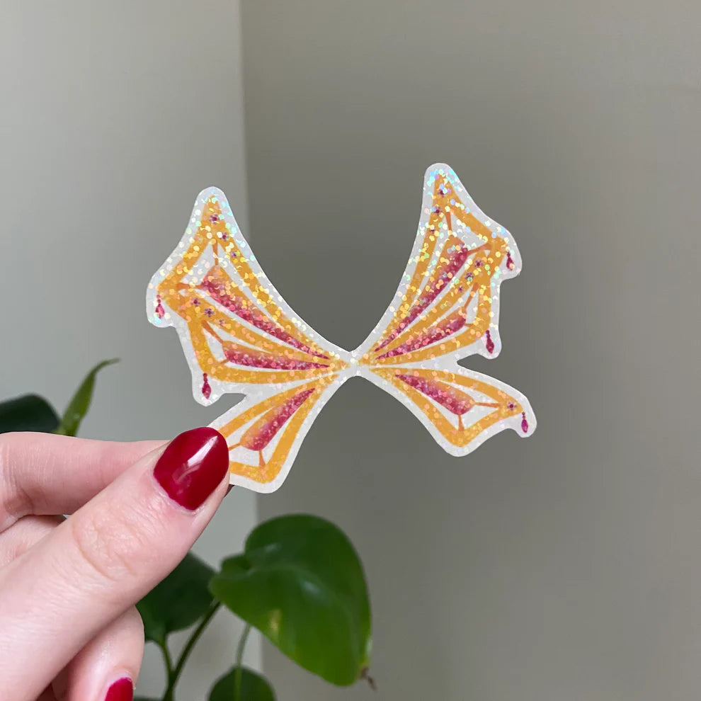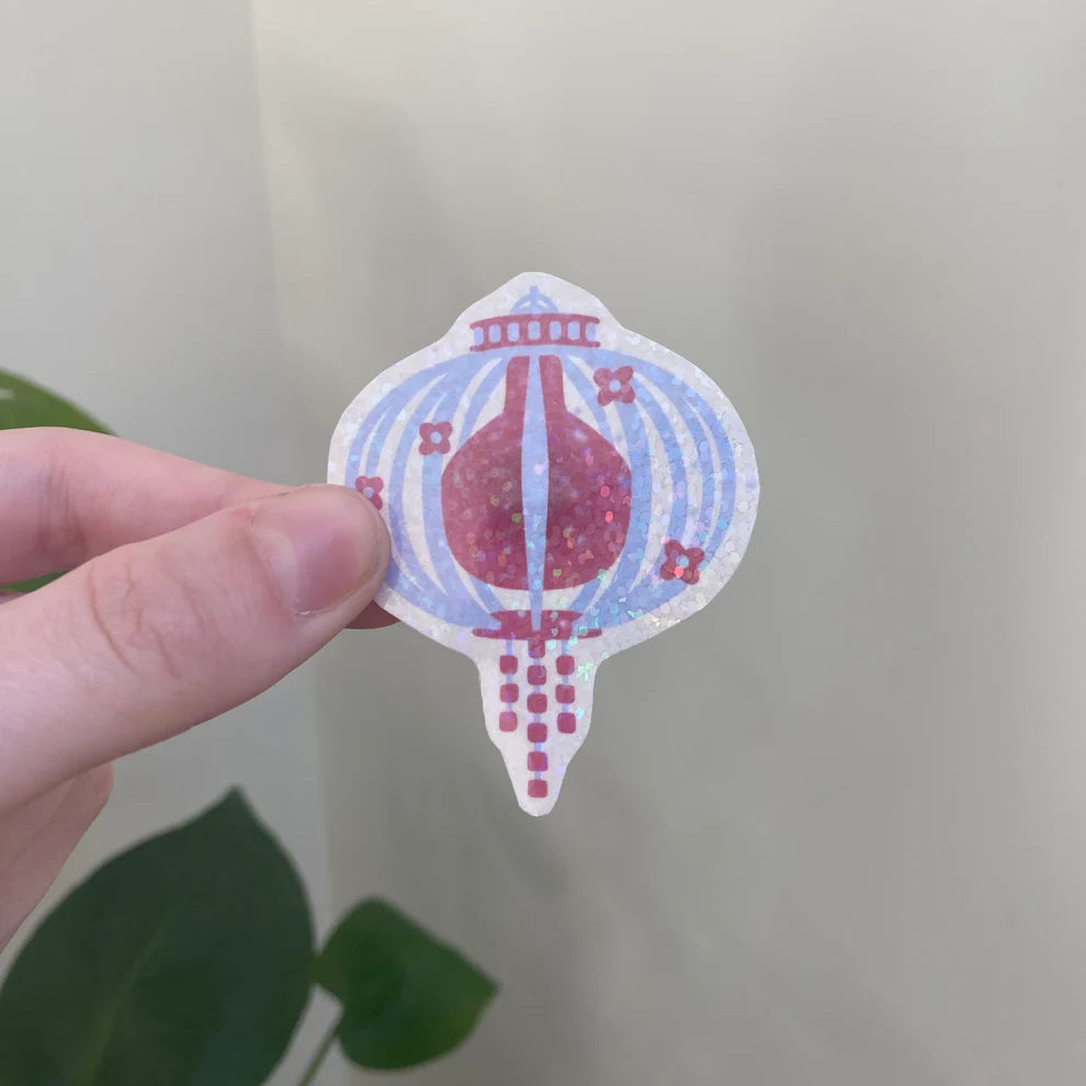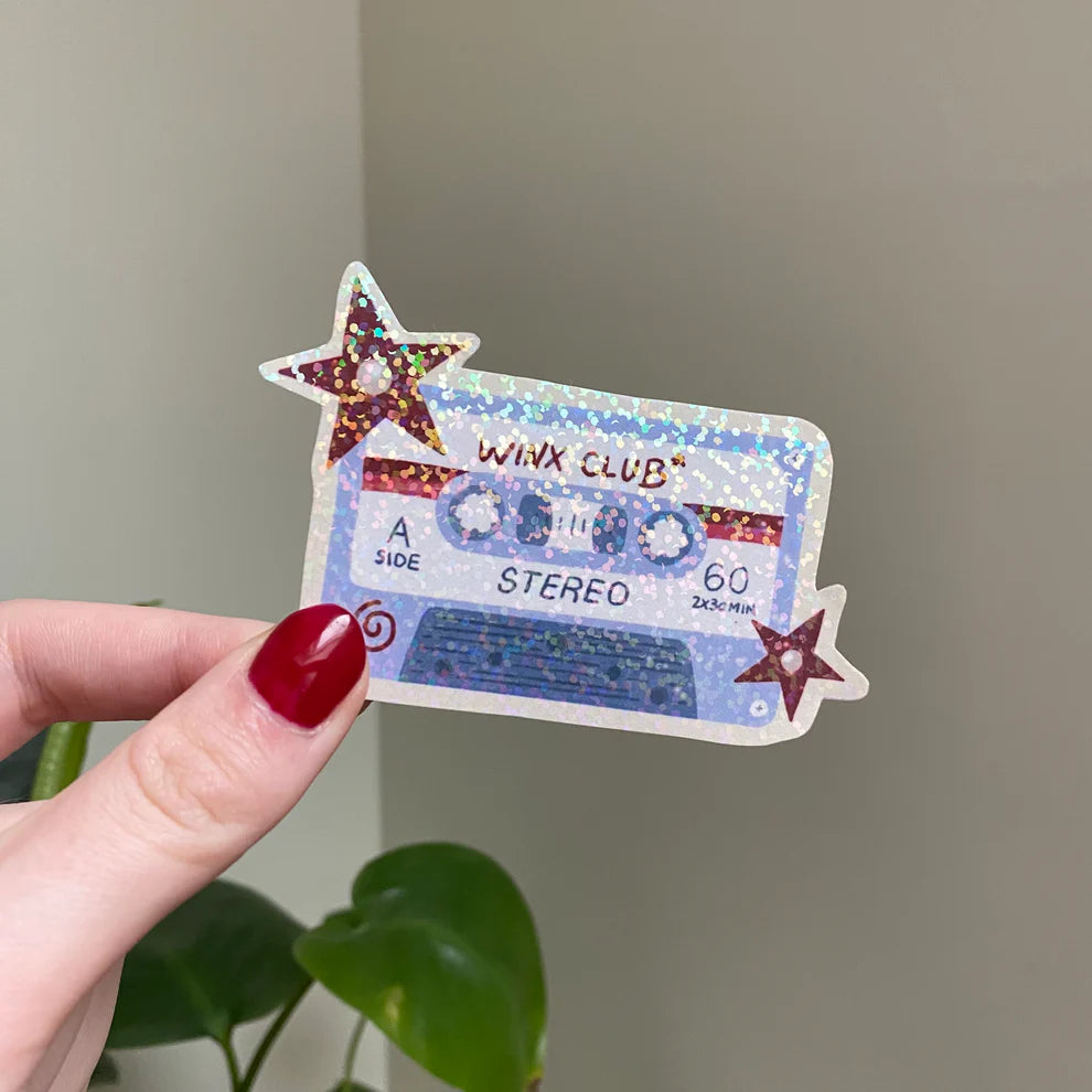 Stickers avec une lamination remplie de petites paillettes holographiques.