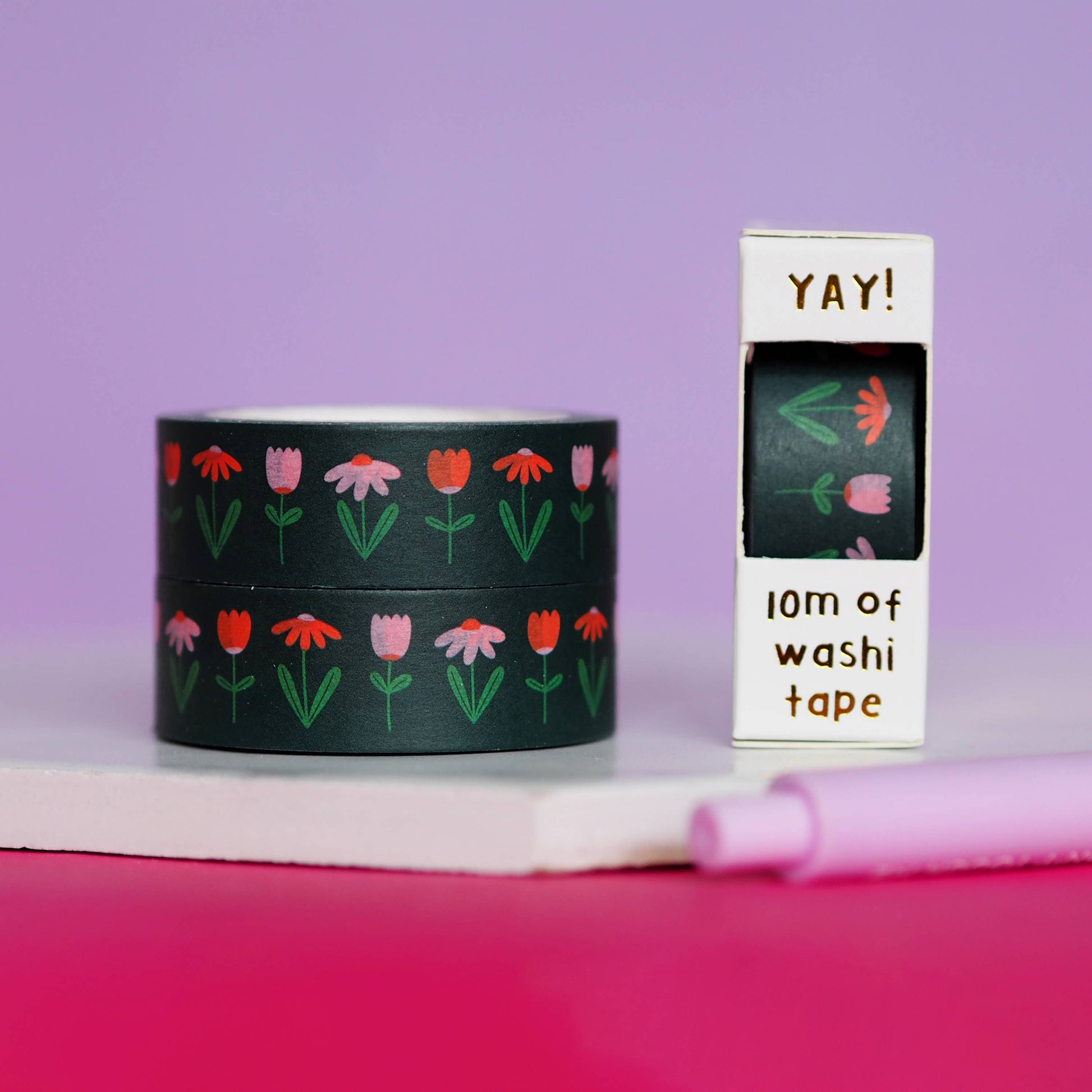 Ce ruban washi présente un superbe motif botanique, avec des fleurs simples mais accrocheuses qui fleurissent sur un fond vert luxuriant. Les jolies fleurs ne manqueront pas d'impressionner et les couleurs vives du ruban adhésif égayeront votre agenda.